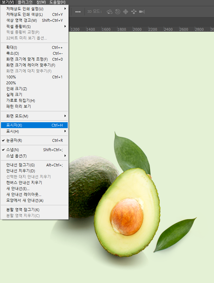 포토샵 - 가장자리 테두리 상자(바운딩박스)가 보이지 않을 경우.