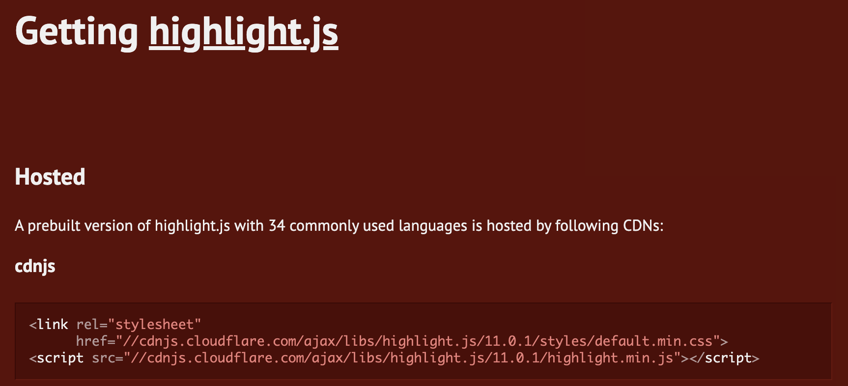 <link rel="stylesheet" href="//cdnjs.cloudflare.com/ajax/libs/highlight.js/11.0.1/styles/default.min.css">